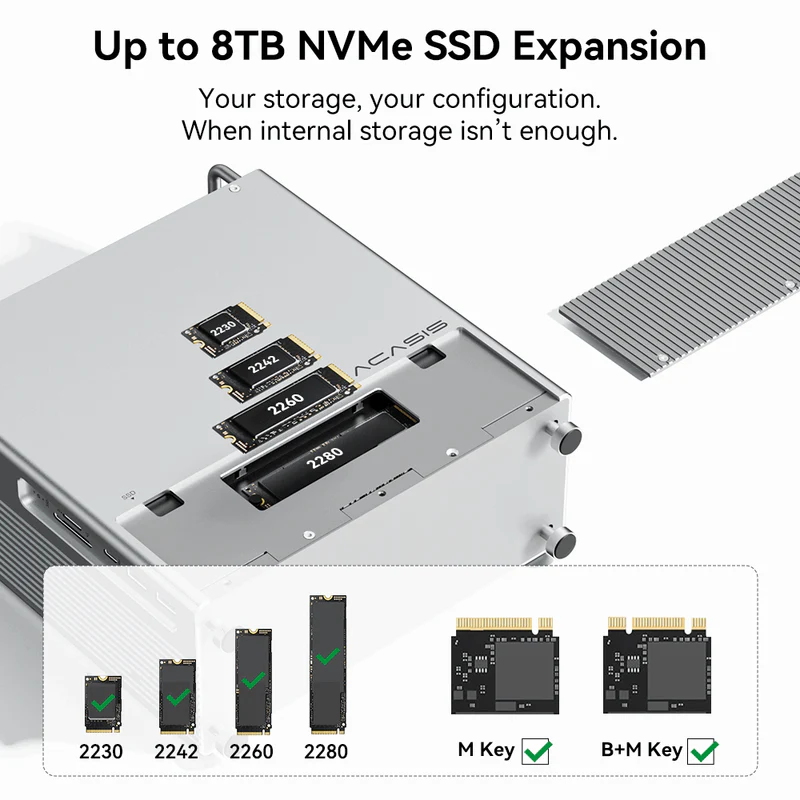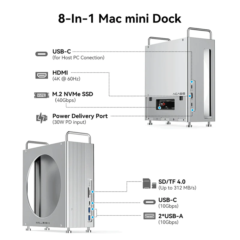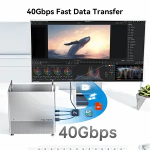 Powered by a 40Gbps Thunderbolt connection, the Acasis Mac mini Dock delivers ultra-fast data transfer for NVMe SSDs. Move large files, edit high-resolution photos and videos, and work directly from external storage with speed and stability you can rely on.