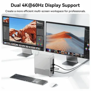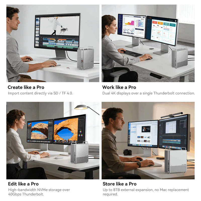 One dock solves multiple Mac mini challenges: limited storage, insufficient ports, and messy cables. Discover how 8TB NVMe storage, dual 4K HDMI, and USB-C/USB-A expansion can transform your workflow.